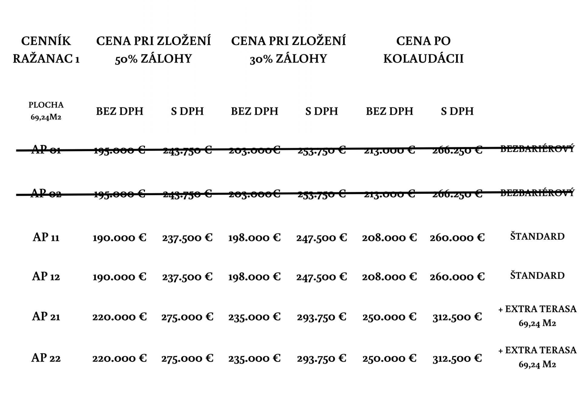 CENNÍK APARTMÁNOV